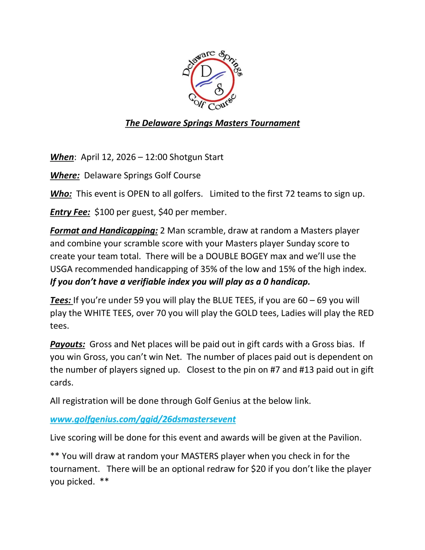 The Delaware Springs Golf Course offers an assortment of top-quality facilities. Our Pro Shop has the newest gear from TaylorMade, Callaway, Titleist, Ping and much more at great prices. And if you are hungry before or after your round of golf, be sure to stop in for a delicious bite at our restaurant the 19th Hole. For all golfers out there, we are equipped with great practice facilities where you can sharpen your skills or take a lesson from one of our golf professionals. We pride ourselves on ensuring you have an excellent experience while at Delaware Springs Golf Course.